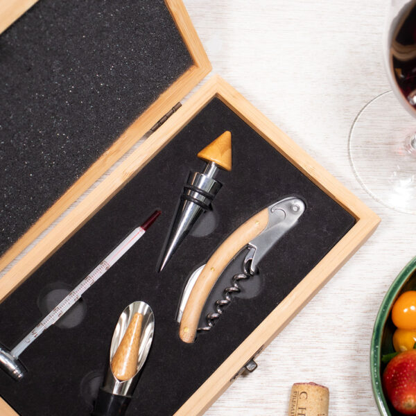 Set Escanciador-Tapón BorgoñaVertedor de Vino: Fabricado con materiales duraderos, este vertedor garantiza un flujo suave y sin goteos, permitiendo servir el vino con precisión y elegancia. Tapón de Vacío: El tapón de vacío mantiene tu vino fresco por más tiempo, extrayendo el aire de la botella y creando un sellado hermético. Ideal para conservar el sabor y el aroma del vino después de abrir la botella.