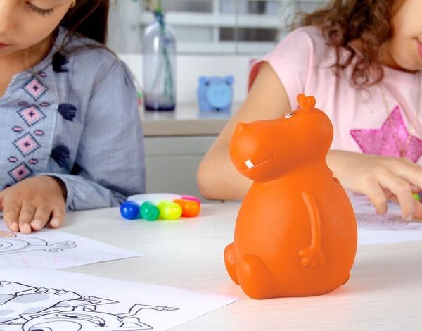 Alcancía con diseño de elefante. Su trompa sirve como holder para celular. Con tapón en la parte inferior para vaciar la alcancía.