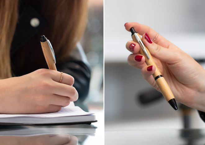 Bolígrafo ecológico en bambú con sistema de apertura retráctil. Clip Metálico