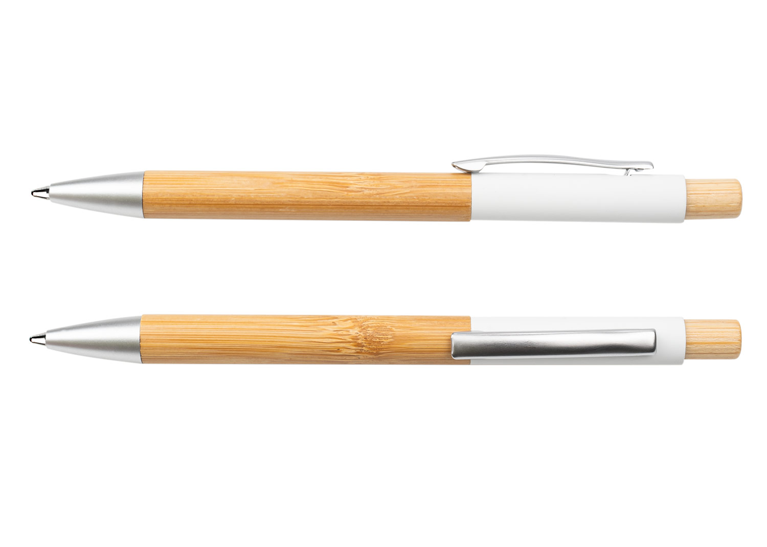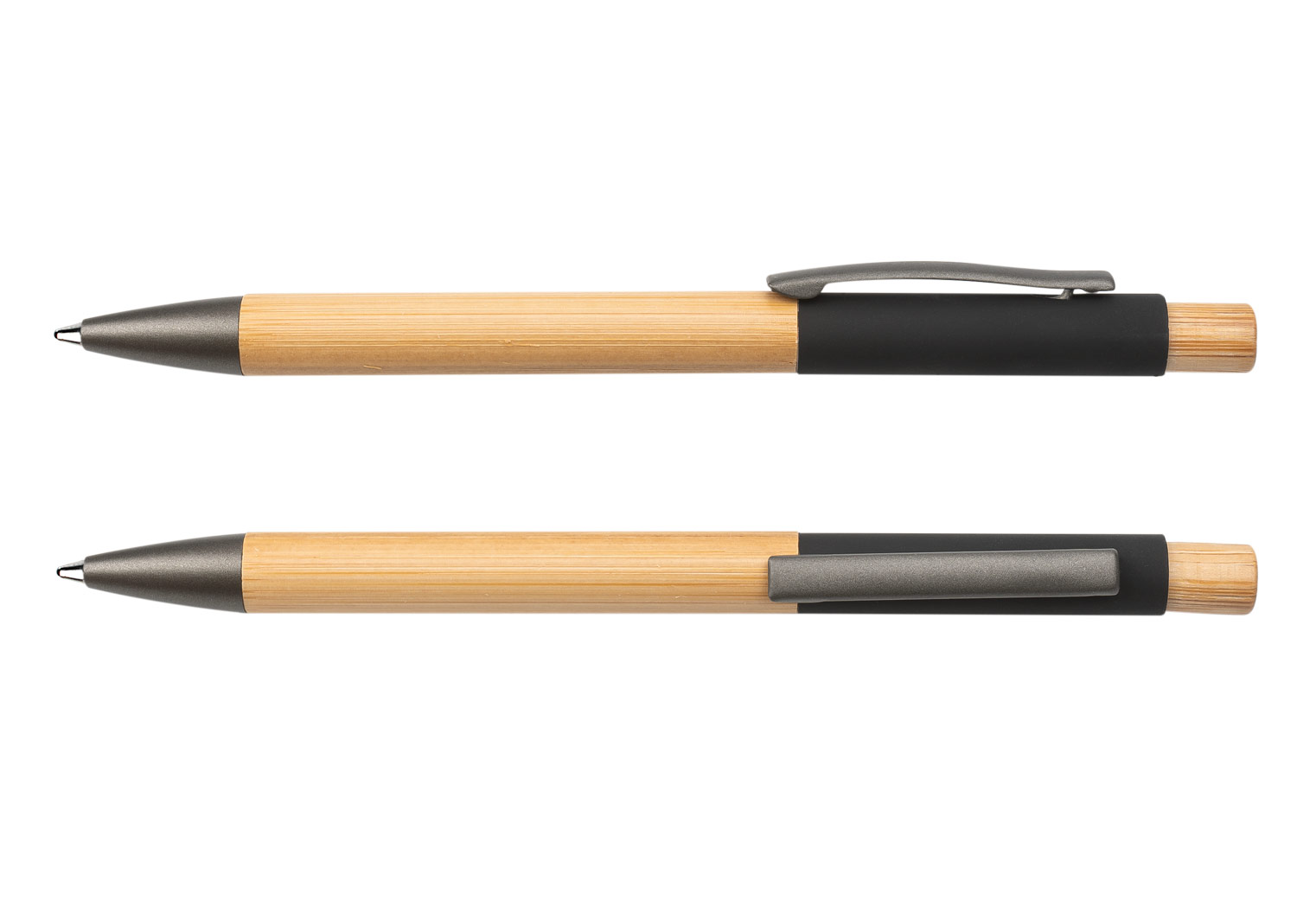 Bolígrafo ecológico elaborado en bambú, con sistema retráctil. Clip y punta metálicos.