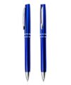 Bolígrafo en Aluminio color metalizado, sistema de apertura retráctil. Diseño con anillos metalizados en la mitad.