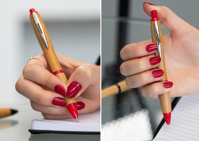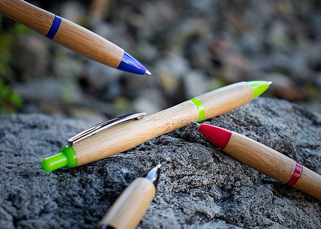 Bolígrafo ecológico en bambú con sistema de apertura retráctil. Clip Metálico