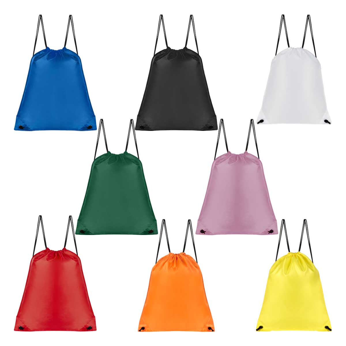 Descripción: Bolsa-mochila con tirantes de cordón y cerrado de jareta.