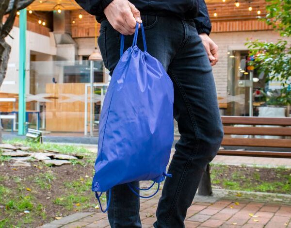 Descripción: Bolsa-mochila con tirantes de cordón y cerrado de jareta. Incluye 2 tiras reflejantes al frente.