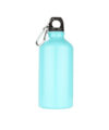 Botella de aluminio con gancho carabinero, tapa rosca. Libre de BPA u otras sustancias nocivas. No retiene ni transmite sabores. Pintura exterior atóxica. Capacidad 300 ml./ XX Oz.