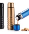 Botella en acero doble pared con tapa rosca. Evita la condensación y aísla las bebidas calientes, ideal para insertar cubos de hielo pequeños y evitar goteos, mantiene las bebidas frías por 24 horas y las bebidas calientes por 12 horas. Capacidad 470 ml. /16 oz.
