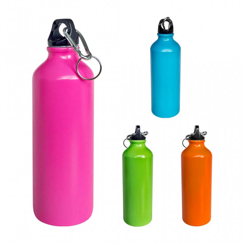 Botilito metálico con colores neón. tapa hermética con mosquetón.