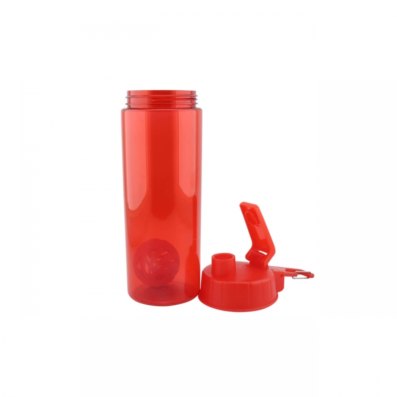 Botilito elaborado en plástico con tapa de rosca y boquilla, incluye mosquetón para sujetar.