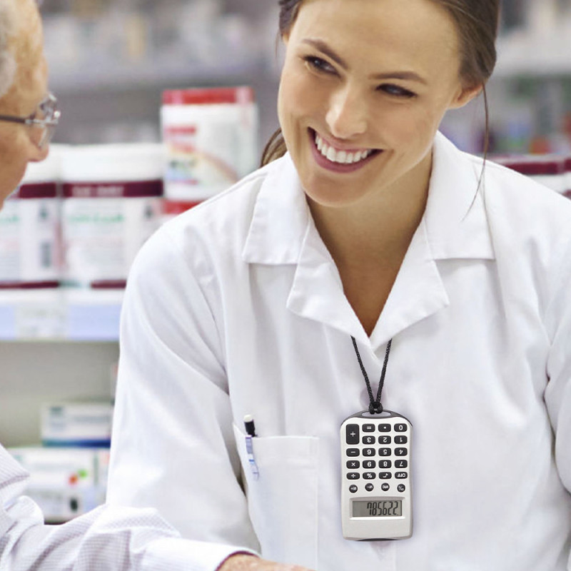 Calculadora de 8 dígitos con cordón para colgar. De: 10 x 5,3 cm.