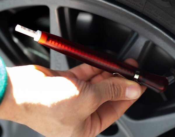 Calibrador pequeño de llantas Max. 50 PSI. Con gancho sujetador. Colores sólidos.