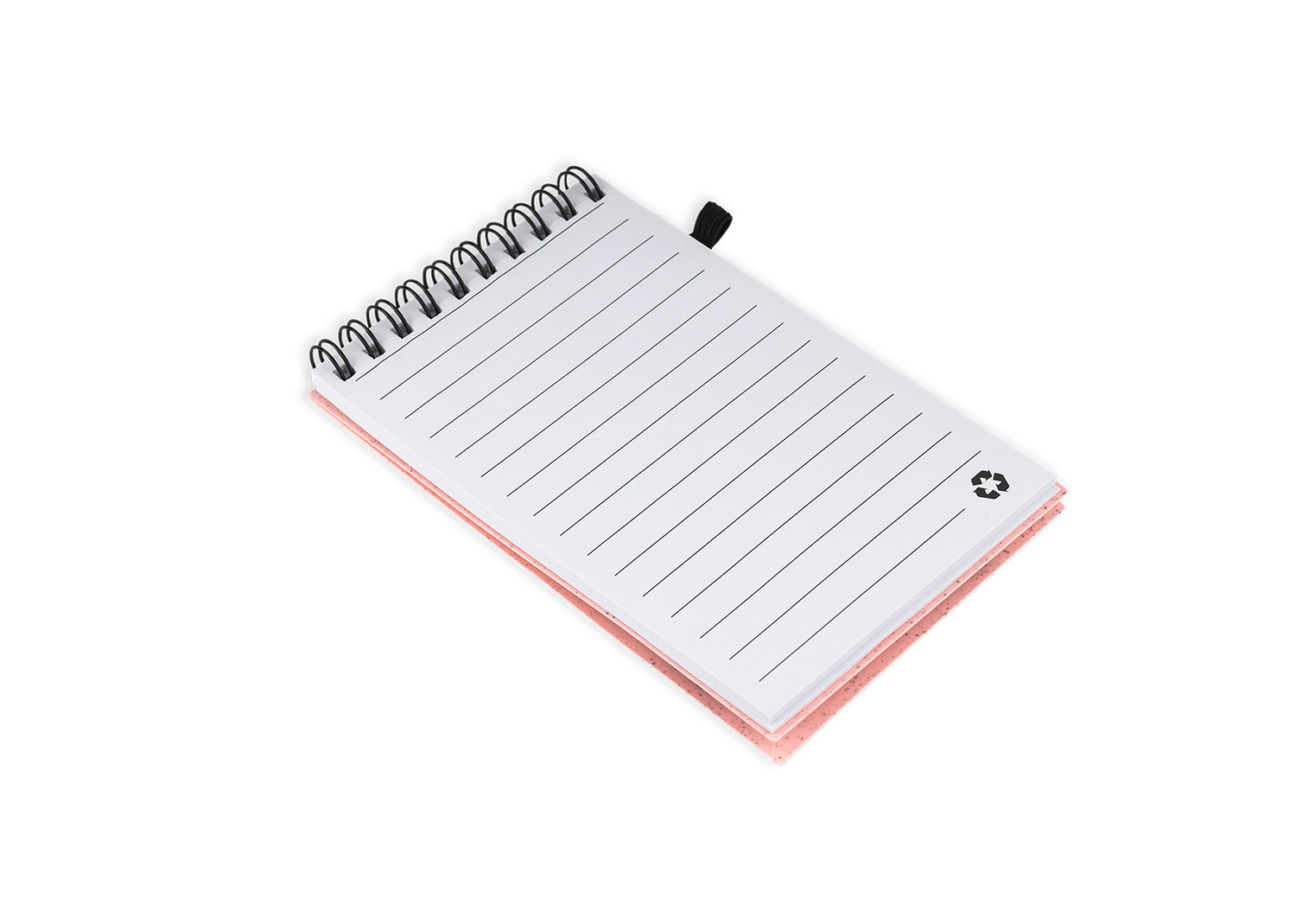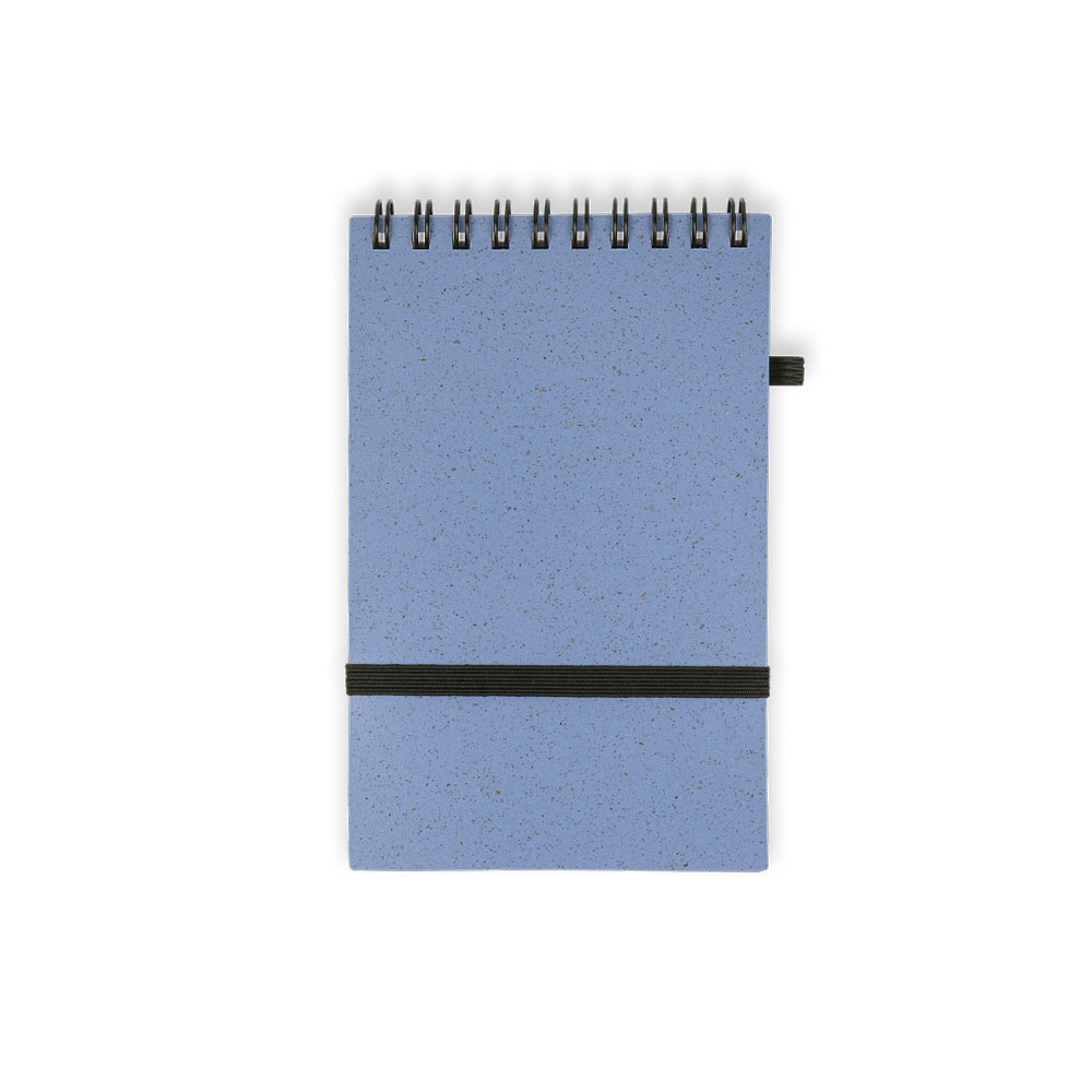 Libreta argollada “doble O” con cubierta en paja de trigo. Hojas de papel reciclado. 60 hojas rayadas. Tamaño aproximado de la hoja: A6.