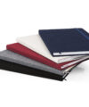Libreta argollada “doble O” con cubierta dura de carton y hojas de papel reciclado.Banda elástica de cierre. 70 hojas rayadas de 70gm. Tamaño aproximado de la hoja: A6. Incluye boligafo ecológico con sistema retractil.