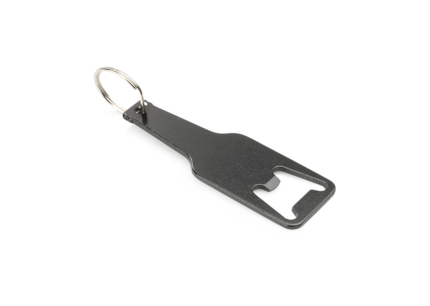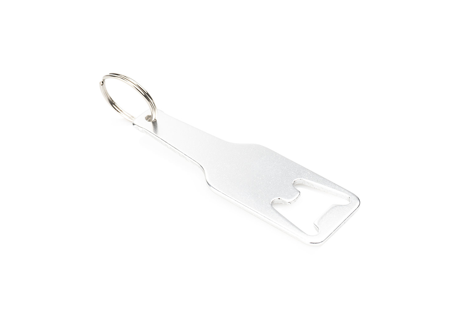 Llavero destapador de aluminio reciclado con forma de botella.