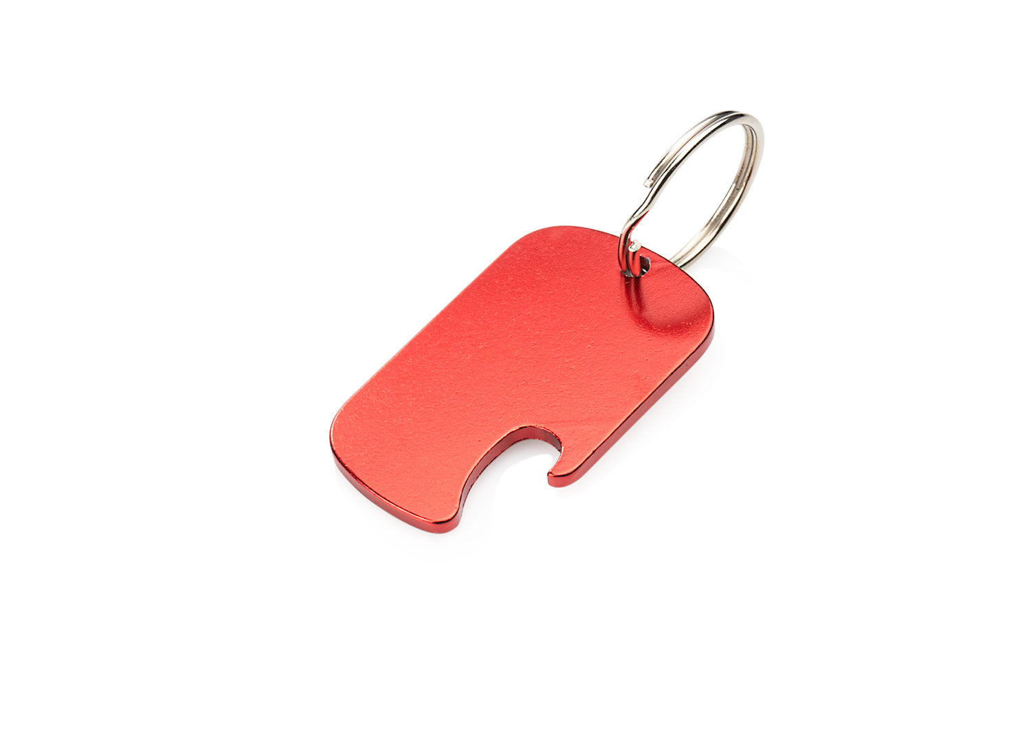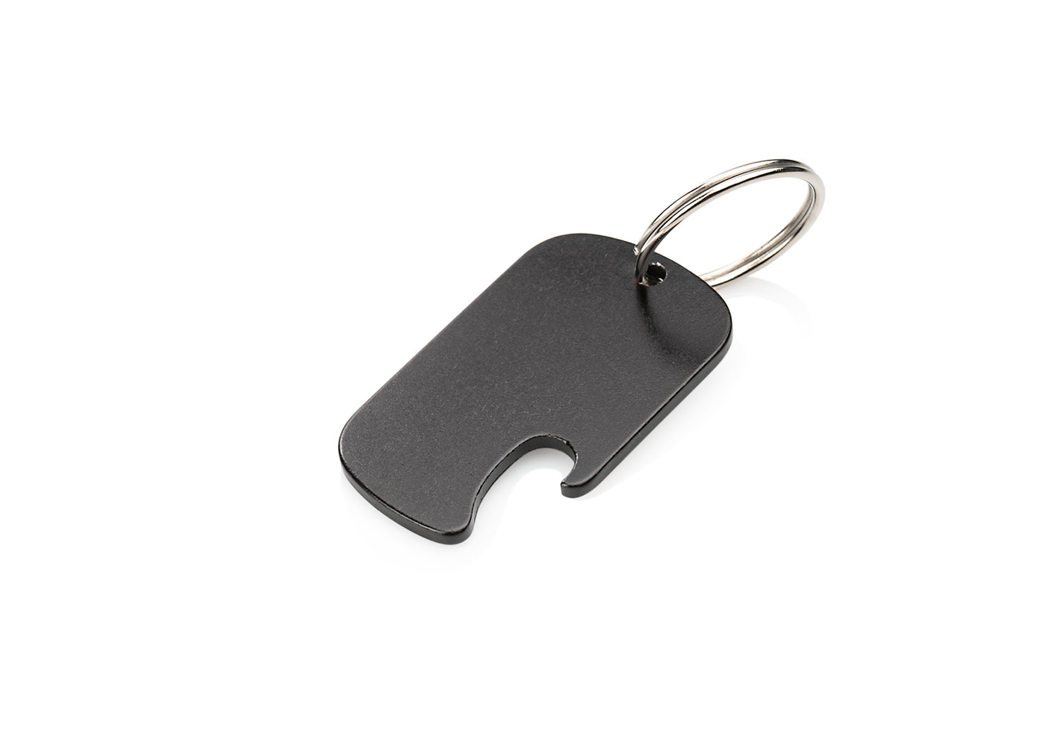 Llavero destapador de aluminio reciclado, con zona amplia para la marca.