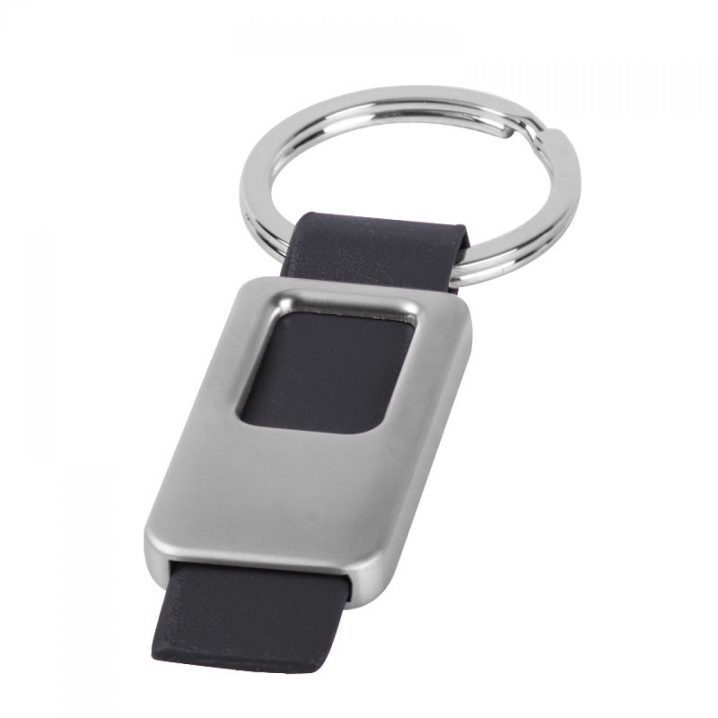 Metálico mate con accesorio en imitación cuero. De 9,5 x 3,5 x 0,5 cm.