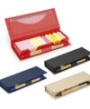 Set en forma de cubo con espacio para las tarjetas ó bolígrafos. Contiene: Taco de 5 colores de 100 hojas cada color, 1 set de memos amarillos de 50 hojas y 5 tacos de banderitas PET adhesivas en diferentes colores, de 25 hojas c/u.