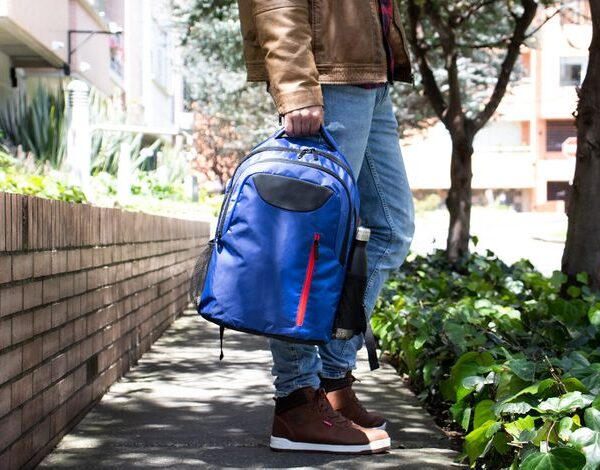 Morral con cargaderas ajustables. Bolsillo medio con compartimiento para documentos y bolígrafos, bolsillo frontal con cremallera.