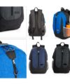 Morral con cargaderas ajustables. Bolsillo medio con compartimiento para documentos y bolígrafos, bolsillo frontal con cremallera.