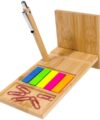 Empujando hacia adelante, encuentras bloc rectangular con autoadhesivos de color amarillo y en la parte inferior un contenedor con hojas blancas de 7,4 x 8,7 cm. Producto Reciclable.