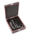 Bolsa con interior térmico para botella de vino. Incluye sacacorchos con navaja y destapador y correa larga con broches.