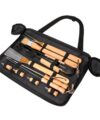 Set de BBQ en delantal. Incluye espátula, pinzas y tenedor y correas ajustables en cuello y cintura.