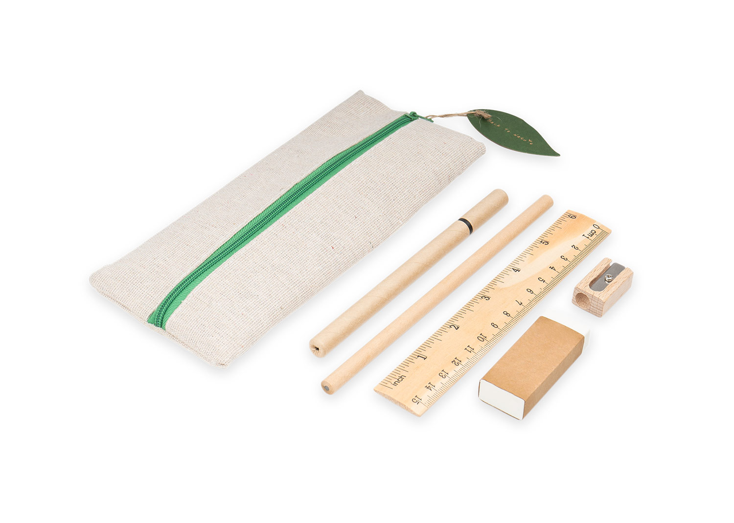 Cartuchera escolar. Incluye lápiz, bolígrafo, borrador, tajalápiz y regla de 15 cm.