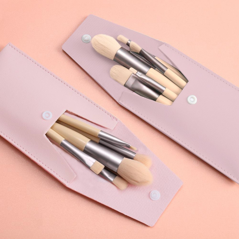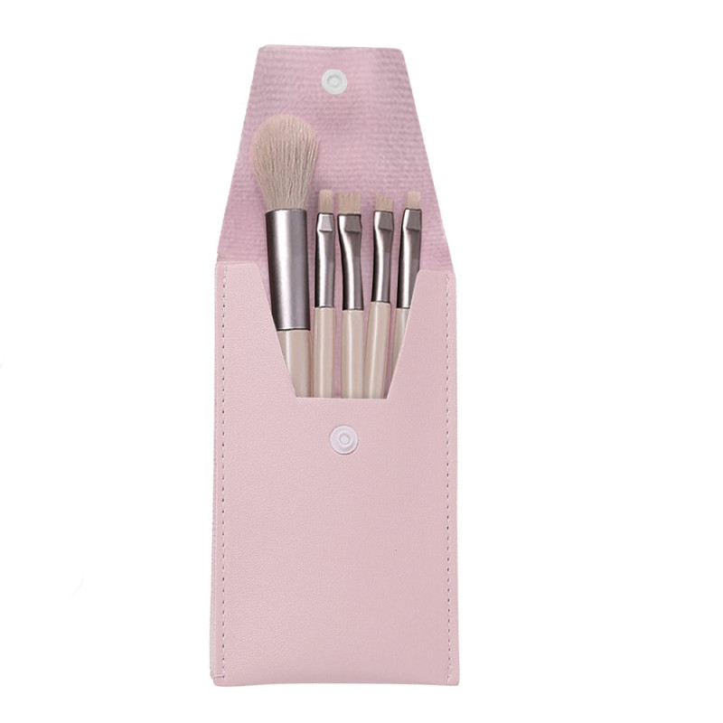 5 cepillos para maquillaje con pelo de crin ultra suave en estuche de cuerina. De: 16 x 9 cm.