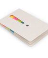 Set de memos con tapa elaborada en material recuperado de cajas de leche. Incluye 10 hojas adhesivas mini y 4 juegos de banderas adhesivas en papel de colores con 30 hojas c/u. Troqueles circulares al frente.