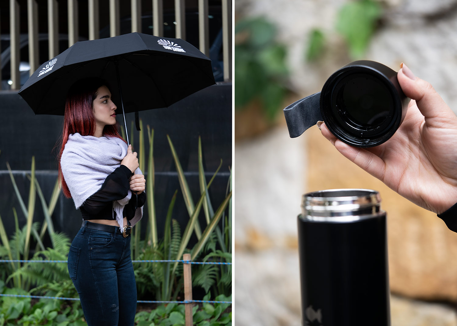 MATERIAL: Paraguas con tela 190t Pongee. Botella en Acero.