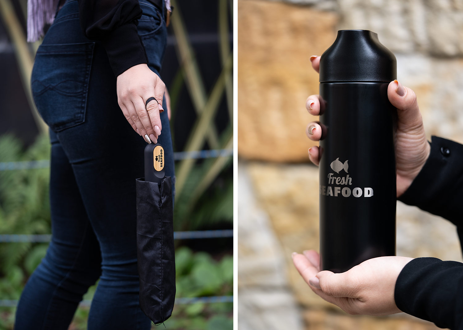 Set ejecutivo con estuche de lujo. Incluye botella de 600 ml / 20 Oz en acero inoxidable con tapa rosca y banda de silicona para transportar con facilidad, y paraguas mini de 19″. Ambos elementos tienen un detalle en bambú para marcar con láser.