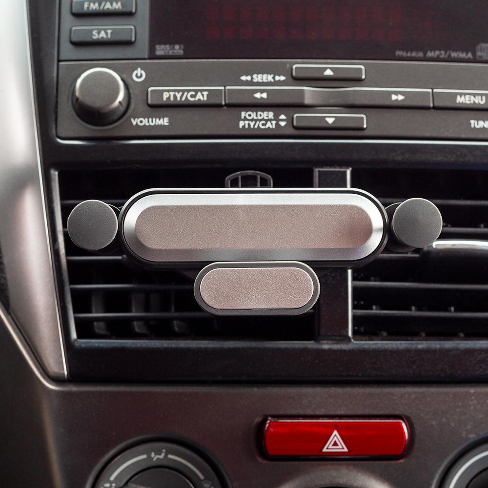 Soporte plástico ajustable. Rotación 360°, para colocar en la rejilla del ventilador de carro. Empaque caja individual.