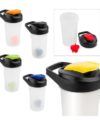 Botella con Shaker, colador, vaso y pastillero con compartimientos removibles. En PP, Libre de BPA, ftalatos u otras sustancias nocivas. No retiene ni transmite sabores u olores. Capacidad 500ml / 17 oz .