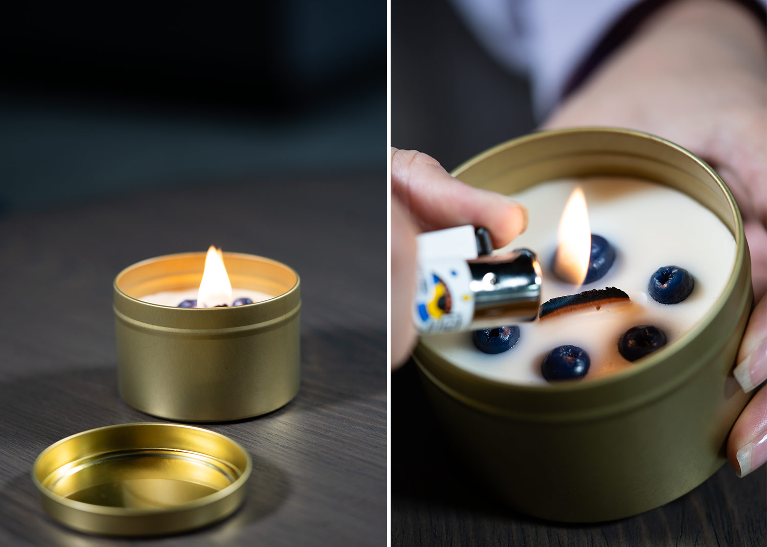 MATERIAL: Caja metálica, cera de parafina y aroma